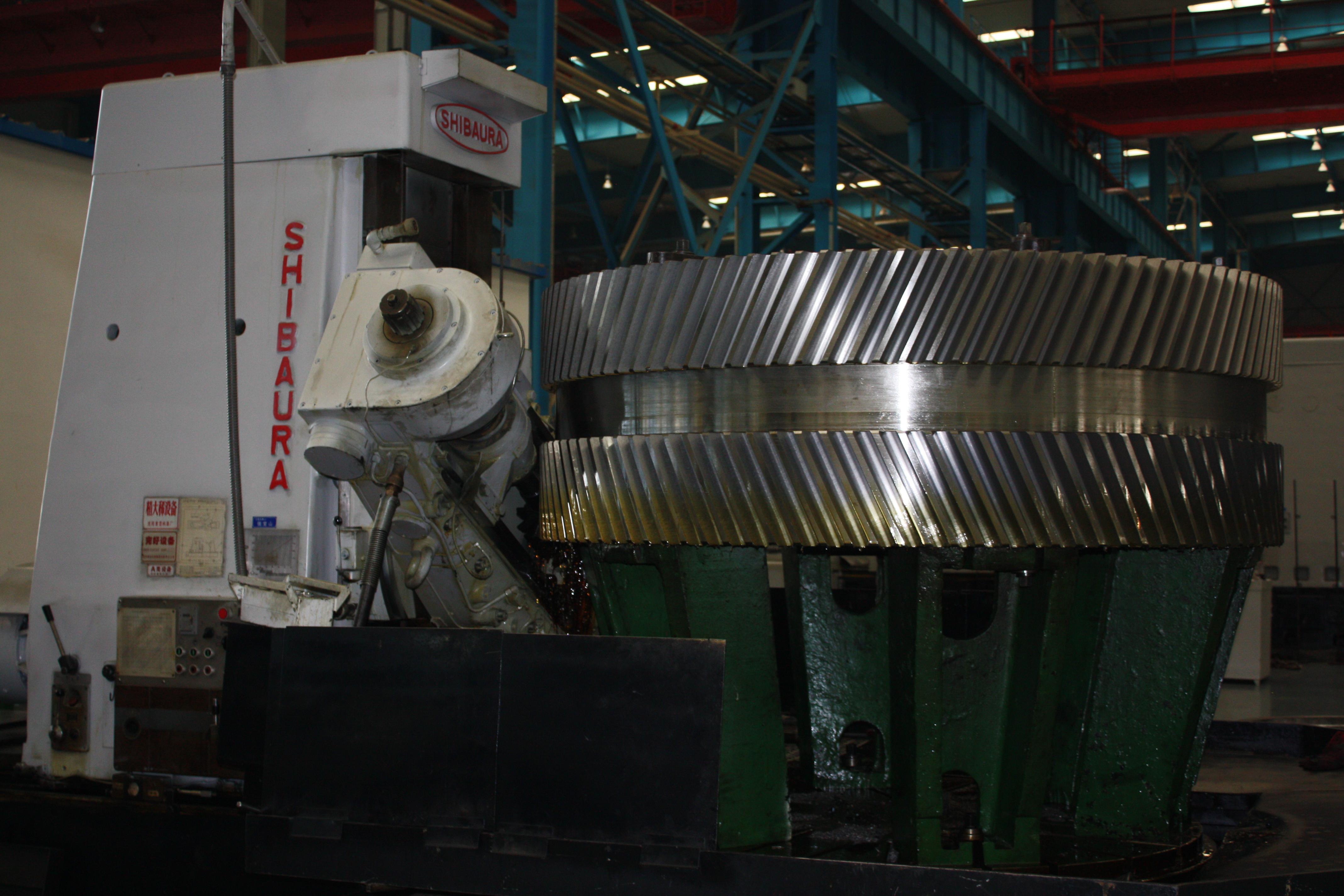 我公司有3000mm以上大型滾齒機10臺,其最大加工直徑14000mm;最大模數(shù) 40—50mm(與使用刀具有關);最大齒寬2300mm。