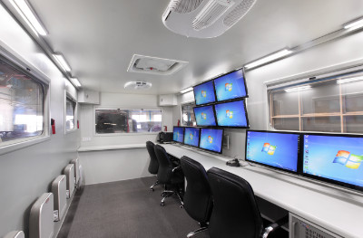 儀表車能夠?qū)ψ鳂I(yè)現(xiàn)場(chǎng)的所有壓裂裝備實(shí)現(xiàn)全過(guò)程監(jiān)控,具備集中控制,井場(chǎng)監(jiān)測(cè),數(shù)據(jù)采集、分析、處理等功能,作業(yè)現(xiàn)場(chǎng)可實(shí)現(xiàn)無(wú)人值守;系統(tǒng)聯(lián)接方式可選用環(huán)型或星型等網(wǎng)絡(luò)拓?fù)浣Y(jié)構(gòu),并設(shè)有標(biāo)準(zhǔn)以太網(wǎng)接口及多種通訊協(xié)議,可兼容控制多種品牌泵車、混砂車等設(shè)備;采用DVCommand(指揮系統(tǒng))及MPC(多泵控制系統(tǒng))控制與數(shù)據(jù)采集軟件,可靈活配置采集通道,滿足壓裂作業(yè)要求。通過(guò)與第三方軟件實(shí)時(shí)通訊,可在任意地點(diǎn)登錄網(wǎng)站遠(yuǎn)程監(jiān)視作業(yè)情況;整車按照可靠性、維修性、保障性、安全性、測(cè)試性和環(huán)境適應(yīng)性“六性”設(shè)計(jì),安全可靠舒適、便于操作使用。